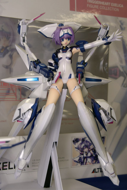 3月11日に開催された、宮沢模型展示会2008春のアルターブースでは、アルター「トリガーハート エグゼリカ エグゼリカ」(AA)のPVCサンプルが展示されていました。これは、ワンフェス2008冬等でも展示のあった、アルター「フェイト」(参考レビュー)の箱のサイズを「余裕で超えてます。」という「トリガーハート エグゼリカ」のキャラ「エグゼリカ」を立体化したものです。