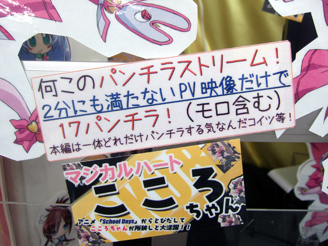 とら本店ではPOP展開が開始されていて、こころのPOPがたくさん展開していた他、POPに「何このパンチラストリーム!2分にも満たないPV映像だけで17パンチラ!(モロ含む) 本編は一体どれだけパンチラする気なんだコイツ等!」として、PVでのパンチラシーンを掲示していましたw