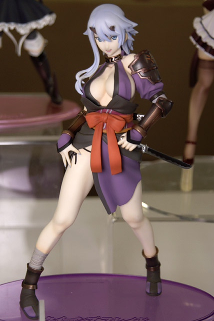 3月11日に開催された、宮沢模型展示会2008春のメガハウスブースでは、アルファオメガ「エクセレントモデルCORE クイーンズブレイドEX 甲魔忍軍頭領シズカ」(AM)のサンプル展示がされていました。これは、クイブレのビジュアル&CDドラマブック「武者巫女絵巻」に登場する「甲魔忍軍頭領シズカ」を、とれほびのレビューによるとキャストオフ可能な仕様で立体化したもの。