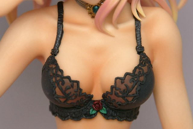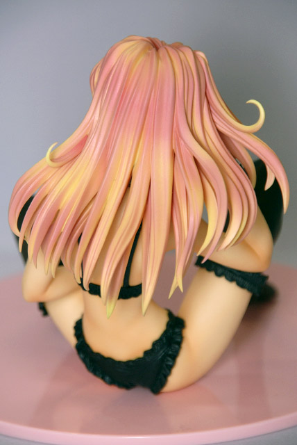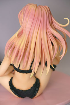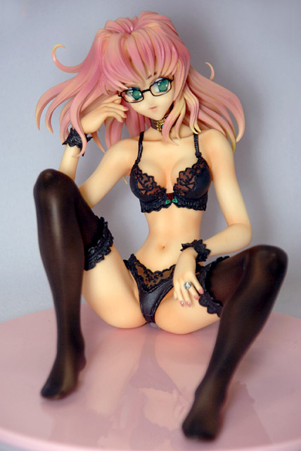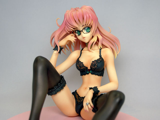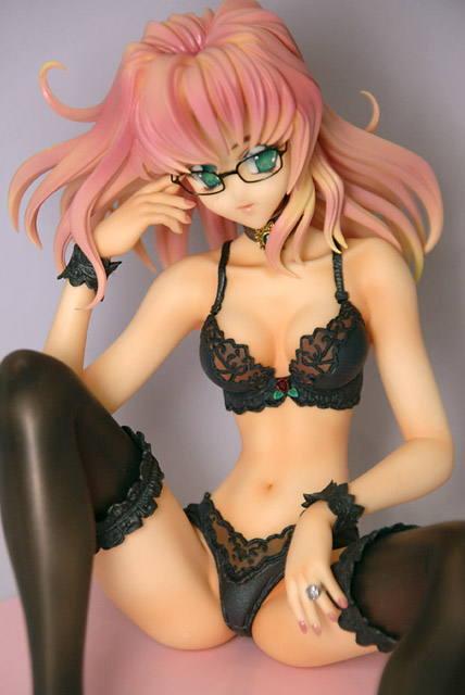 これは、以前同じくサンプルレビューをお伝えした「SIF EX Pretty Cat’s Show Time Lesson B」(AA)のバリエーションとなるもので、あみあみの商品説明によると『天織龍樹氏の作品集「PReTTY CaTs SHoW Time」の、イラスト名”LESSON B“を立体化して大好評のPVCフィギュアに、一部造形を変更したブラックランジェリーVer.が登場!ピンクの髪にエメラルドグリーンの瞳、黒い下着など、レギュラー版とは違った表情に仕上がりました。身に付けているのは黒いランジェリーのみというよりセクシーな『先生』をご堪能ください。』と紹介されています。