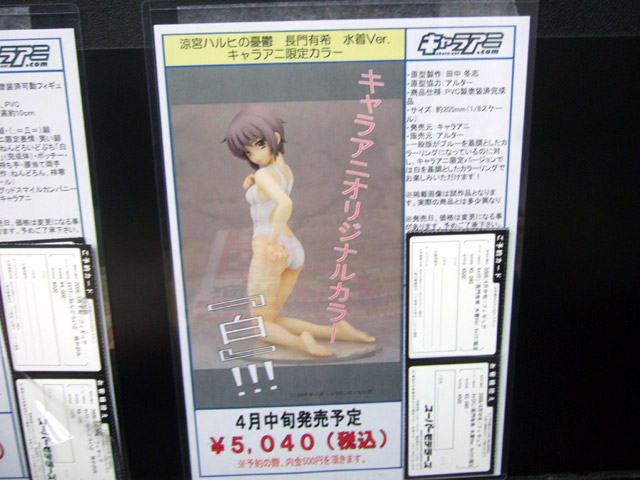 関連:Fate/stay night – 公式/らき☆すた – 公式/涼宮ハルヒの憂鬱 – 公式/アルター 涼宮ハルヒの憂鬱 長門 有希 水着Ver.「キャラアニ限定カラー」&「通常版」 【WF2008冬レポ】/キャラアニ限定フィギュア スーパーモデラーズで普通に販売&今後も入荷予定みたい