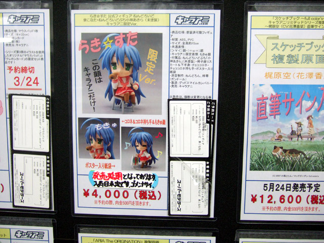 他、スーパーモデラーズでは、以前「キャラアニ限定フィギュア スーパーモデラーズで普通に販売&今後も入荷予定みたい」でお伝えした際には「入荷数が不明瞭なので、予約受付無い」としていた、キャラアニ「涼宮ハルヒの憂鬱 長門 有希 水着Ver. キャラアニ限定カラー」(CA)と、ねんどろいど らき☆すた「柊かがみ キャラアニ限定Ver.」(CA)、「泉こなた キャラアニ限定Ver.」(CA)の計3種のキャラアニ限定版の入荷数が確定できたのか、予約受付が開始されていました。