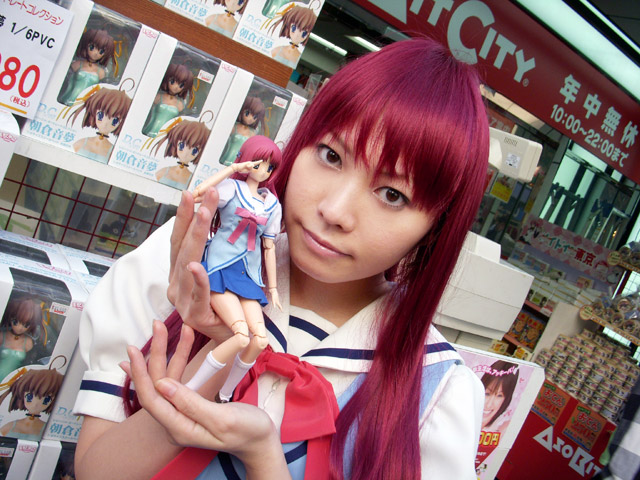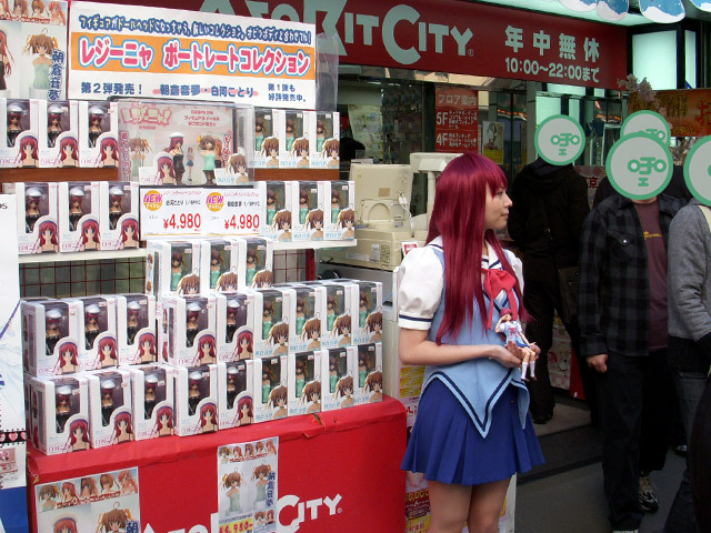 キャラシティ店頭では、先日発売された、レジーニャ!ポートレートコレクション第2弾 D.C. -ダ・カーポ-「白河ことり」(AM)、「朝倉音夢」(AM)の店頭販売を行っていて、コスプレイヤーの零亜さんが、ことりのコスプレをしていました。