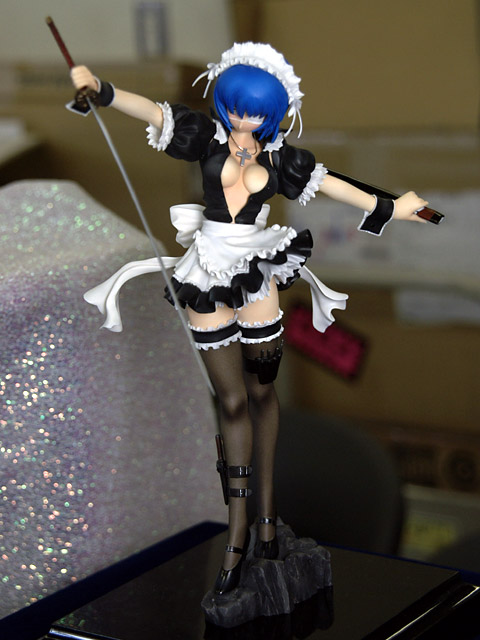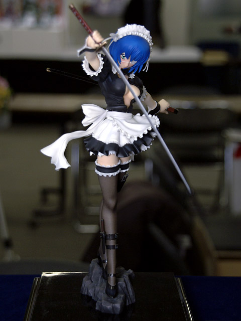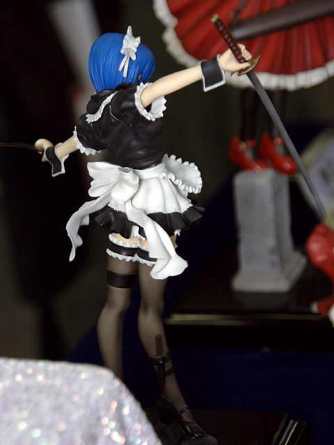 これは、ワンフェス2008冬でも展示のあった、一騎当千の「呂蒙子明」を、前がはだけたメイド服姿で、鞘から刀を抜くポーズを立体化したものです。