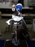 3月11日に開催された、宮沢模型展示会2008春のグリフォンエンタープライズブースでは、「一騎当千 呂蒙子明 メイド服Ver.」(AA)のサンプルが展示されてました。これは、一騎当千の「呂蒙子明」を、前がはだけたメイド服姿で、鞘から刀を抜くポーズを立体化したもの。全体的にかっこいい感じですが、はだけた胸元にはうっすらむねぽちだったり、スージーさんもしっかり