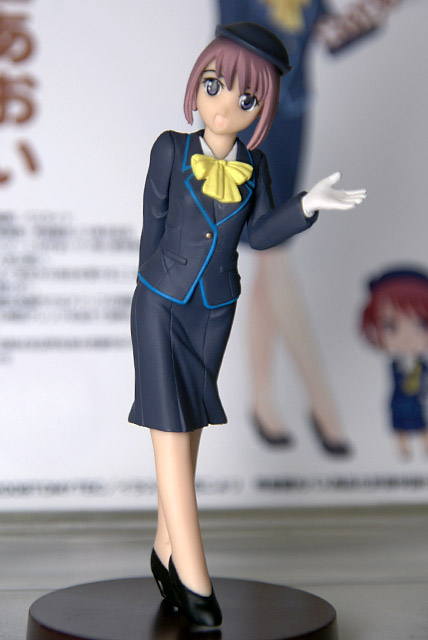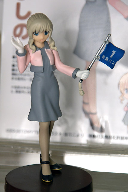 これは、バスむすめ公式の商品説明によると「鉄道むすめシリーズで培った造形・着色・プリントのノウハウをフル活用。バスガイドならではの鮮やかさと可愛らしさもプラスした仕上がりをご覧下さい。」という、架空のキャラ+実在のバスガイド制服で立体化したトレーディングフィギュアです。