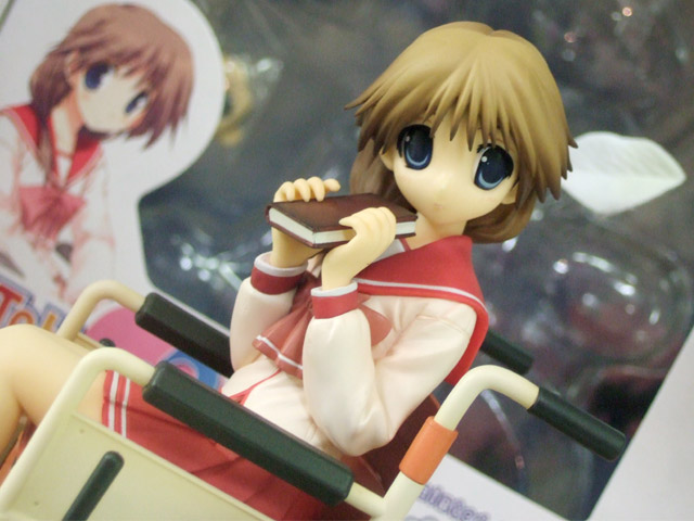 これは、以前サンプル展示もお伝えした、「ToHeart2 AnotherDays」のヒロインの一人小牧愛佳の妹「小牧郁乃」を車椅子に座ったポーズで立体化したもので、コトブキヤの商品説明によると『少し警戒してるような、ムッとしているような「ツン顔」と悪戯っぽく舌を出した愛らしい「デレ顔」。彼女が日常で見せる2つの魅力的な表情を再現することにより、彼女のキャラクター性を表す記号をぎゅっと凝縮した、ひとつの答えともいえる造形に仕上げました!さらに付属の車椅子は主車輪が可動(足元の自在輪は無可動)し、フィギュア本体は取り外す事も可能です。』と紹介されています。