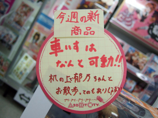 他、17日に入荷確認できたのは、ソフマップアミューズメント館、「車いすはなんと可動!!机の上で郁乃ちゃんとお散歩ってのもありじゃないアリ・アリ・アリ・アリ・・・・・」というPOPのあったキャラシティ、ソフマップPCゲーム・アニメ館、とらのあな本店などでした。