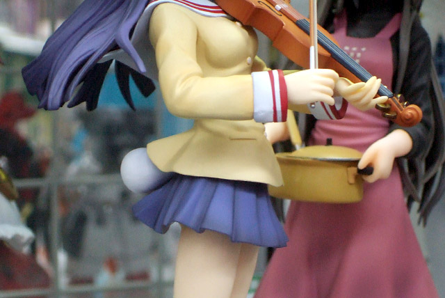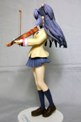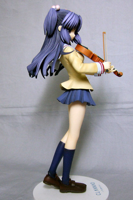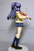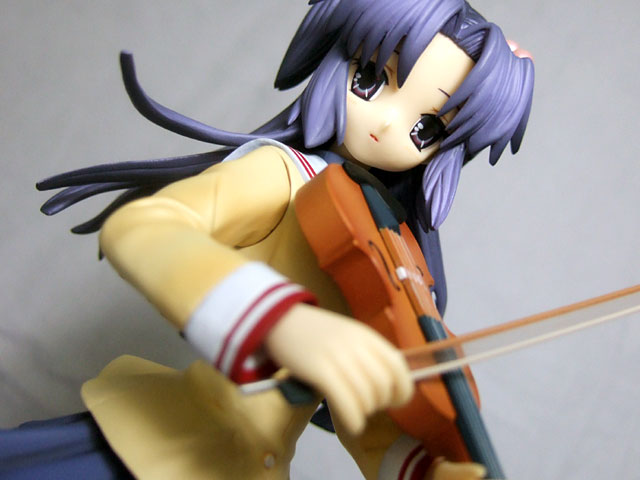 これは、コトブキヤの「CLANNAD」立体化シリーズのひとつとして、「一ノ瀬ことみ」をバイオリンを奏でるポーズで立体化したもので、コトブキヤの商品説明によると「原作はPCゲームの枠を超え、PS2を始めとする家庭用ゲーム機に移植、漫画化やアニメ・映画化等、多数のメディアで展開されています。なお、映画は東京単館公開作品の週末観客動員数ランキングで初登場第1位を記録。商品では劇中において優雅にバイオリンを奏でる一場面だけでなく、差し替えパーツ使用により、計3パターンの仕様がお楽しみいただけます。・付属差し替えパーツにより別ポーズ(ハサミで記事を切り取っている)と別バージョン(「くらにゃどもーど」頭部に付けられるウサギの耳と尻尾)が再現可能。」と紹介されています。
