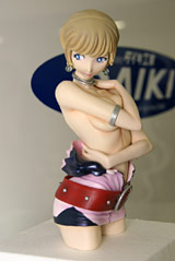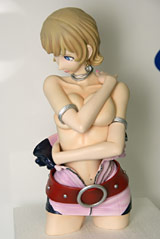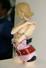 3月11日に開催された、宮沢模型展示会2008春のダイキ工業ブースでは、「009-1 ミレーヌ・ホフマン」(AA)のサンプルが展示されていました。これは、「009-1」のキャラ「ミレーヌ・ホフマン」が、コスを脱ぎかけているポーズの半身像として立体化したものです。1/4スケールと大きなものだけに、触ったらぷにぷにしそうな、乳造形のリアルさはかなりすごいものに!w