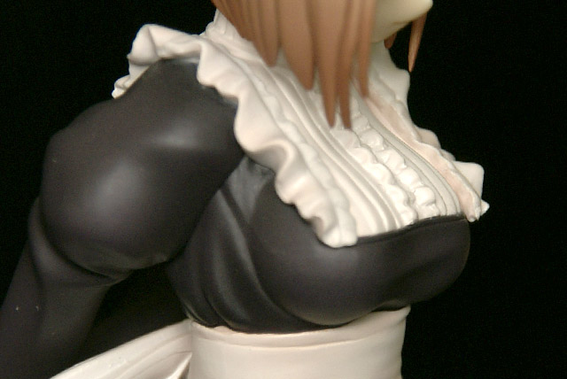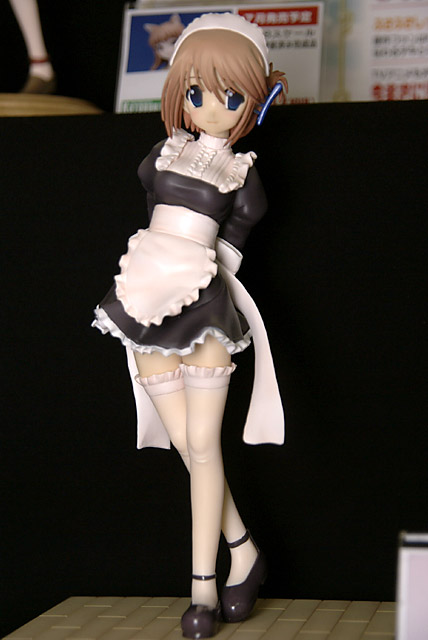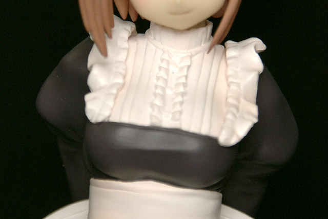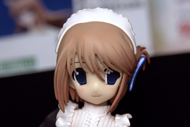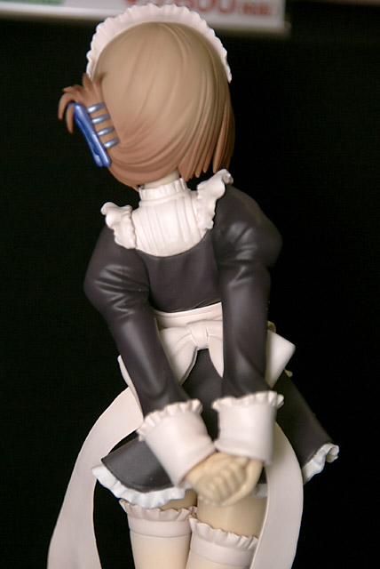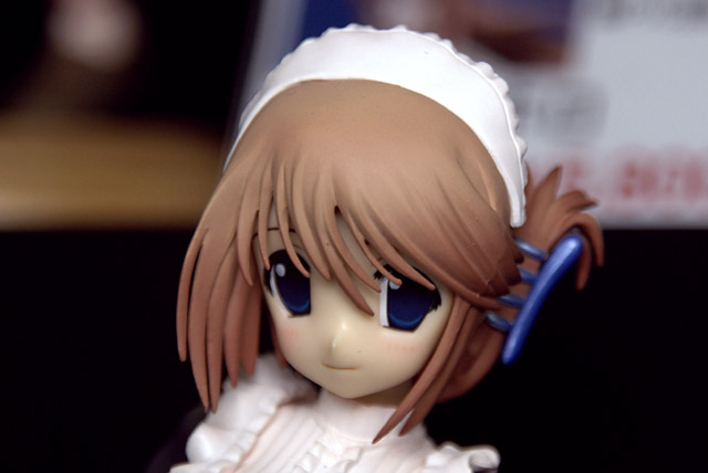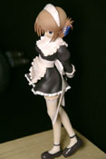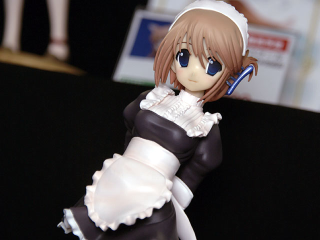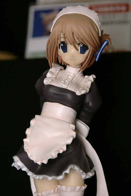 これは以前、コトブキヤショップ限定ピンク版のサンプルをお伝えした、「柚原このみ」(参考レビュー)、「向坂 環」(AA)(参考サンプル展示)と続いている、コトブキヤTo Heart2 AnotherDays メイドシリーズのひとつで、「小牧愛佳」をメイド服で立体化したもので、コトブキヤの商品説明によると『両手を後ろ手に組み、ちょこんと立った飾らない控えめな仕草を立体で再現しました。このフィギュアの為にキャラクターデザインを担当した「甘露樹」氏にポーズイラストを描き下ろしていただきました。両手を後ろ手に組み、ちょこんと立った飾らない控えめな”実にいいんちょらしい”仕草を立体で再現しました。』と紹介されています。