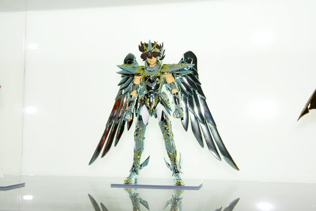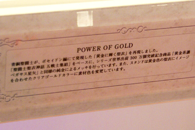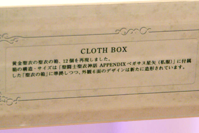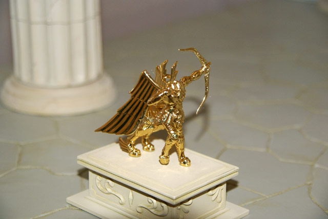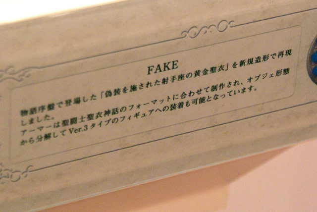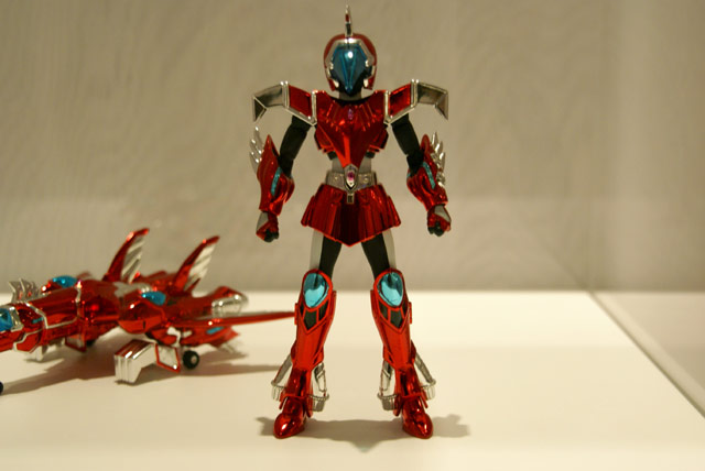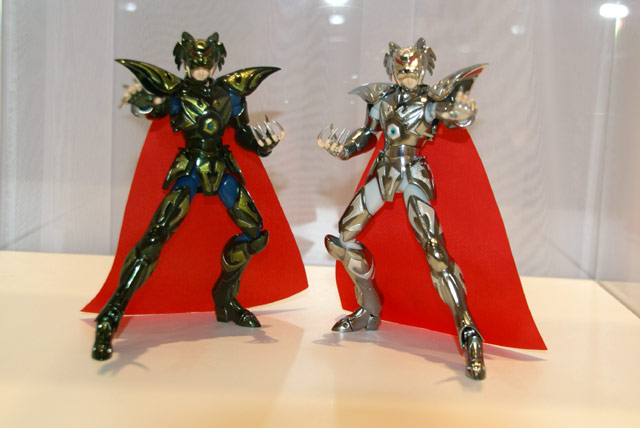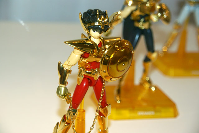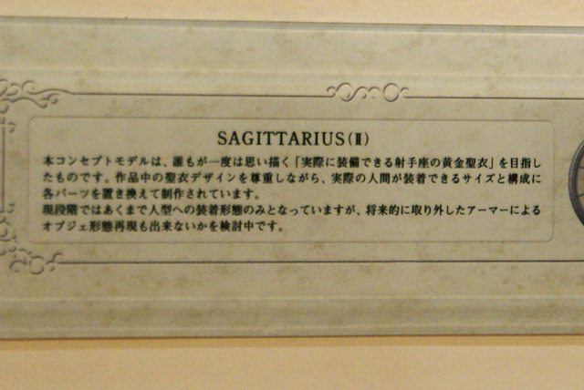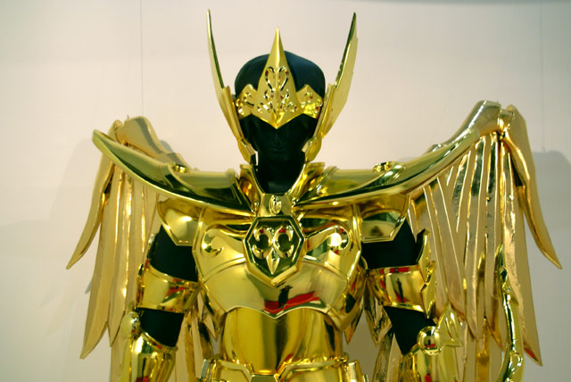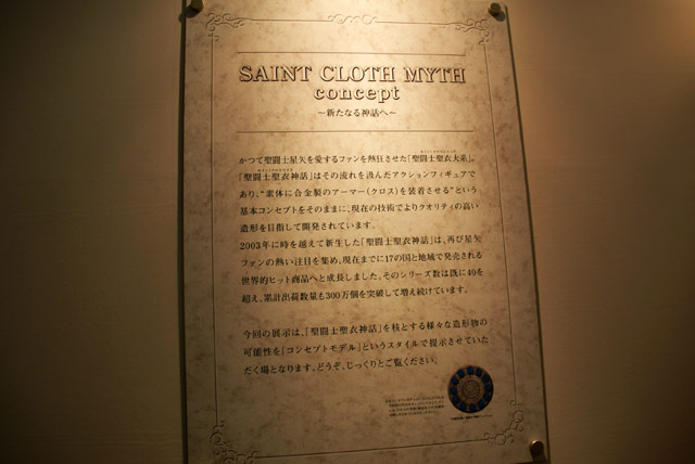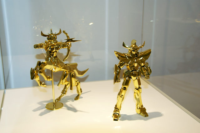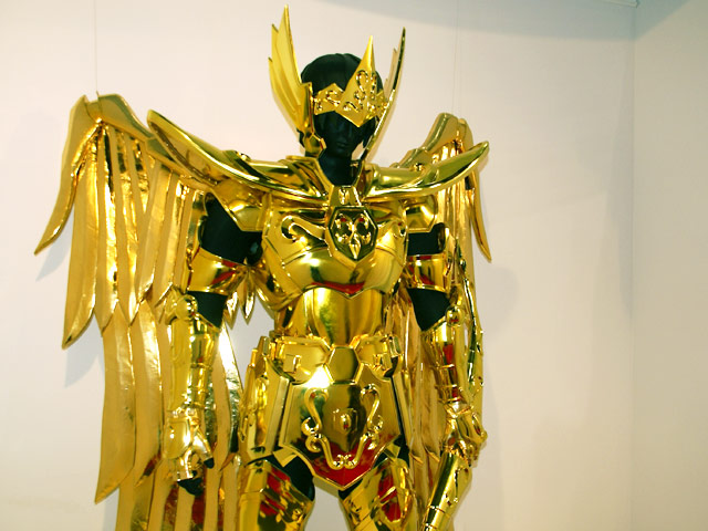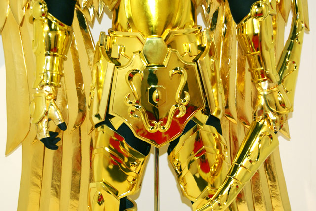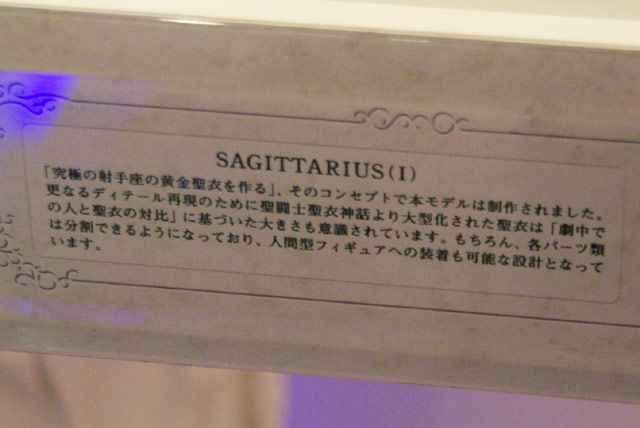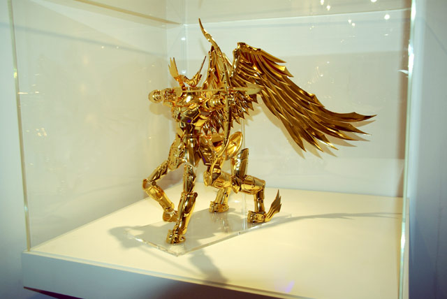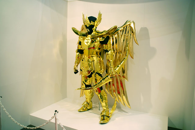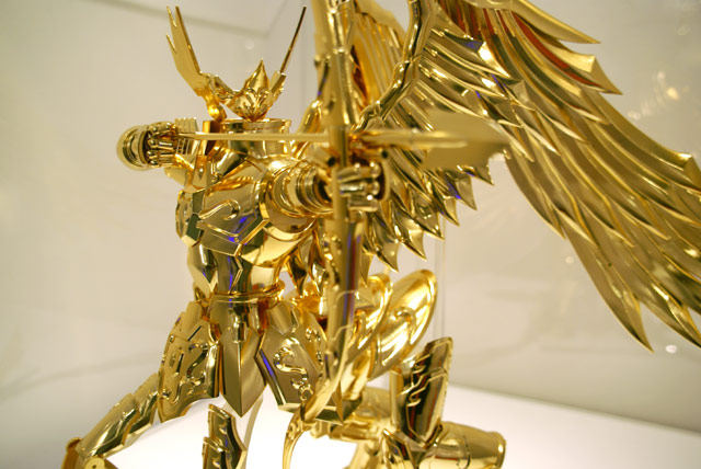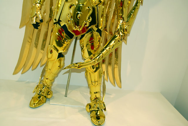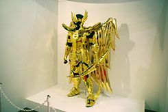 2008年3月20日(木)~23日(日)の期間開催される、魂ネイション2008のプレオープニングレセプションでのセイントクロスマイスブースの様子をフォトレポートでお伝えします。ブースの中は、作品中で最も人気の高いと思われる12宮編の神殿をモチーフにしたような装飾の中、ジオラマを展示。画像は人が着れるというコンセプトで作られた、1/1サジタリウスのクロス。