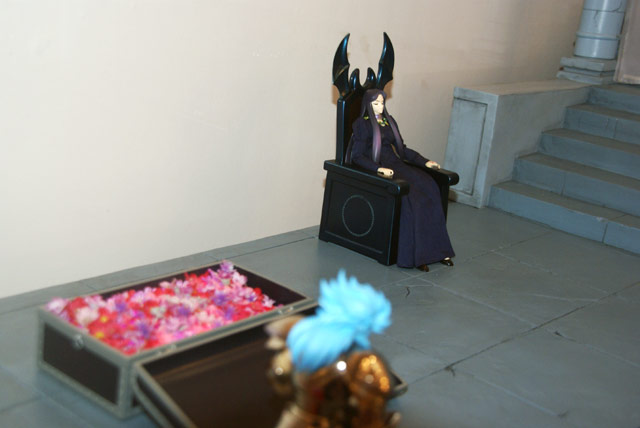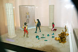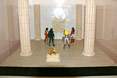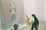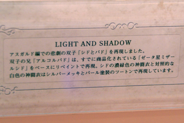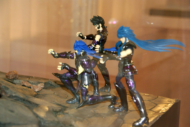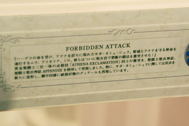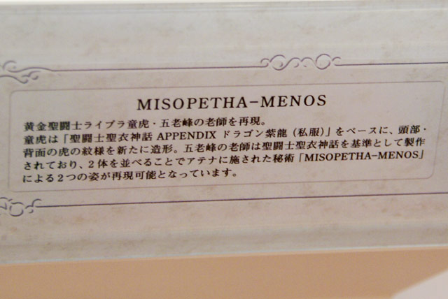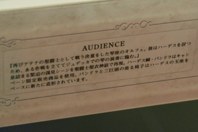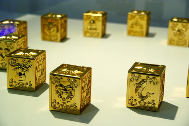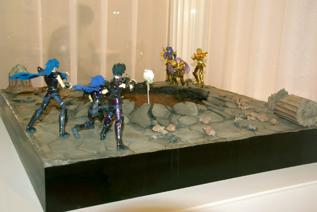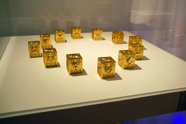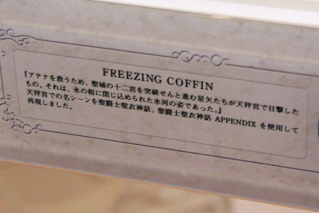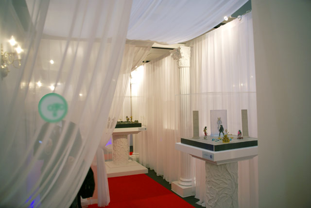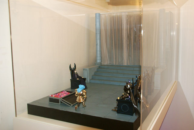 ブースの中は、作品中で最も人気の高いと思われる12宮編の神殿をモチーフにしたような装飾の中、ジオラマを多数展示していました。