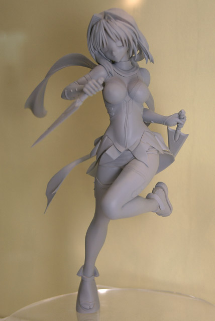 2008年2月24日に開催された、ワンダーフェスティバル2008冬のアルターブースでは、「超昴閃忍ハルカ 鷹守ハルカ」の無彩色原型サンプルが展示されていました。これは、アリスソフトのエロゲ「超昂閃忍ハルカ」のキャラで、「ノロイを追って過去からやってきた上弦衆の閃忍」という、「鷹守ハルカ」を戦闘服姿で立体化したものです。スカート部分のつくりの細かさが秀逸ですよ!
