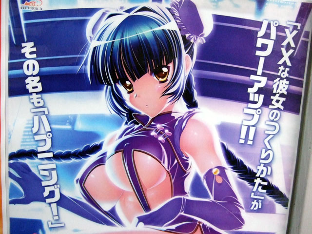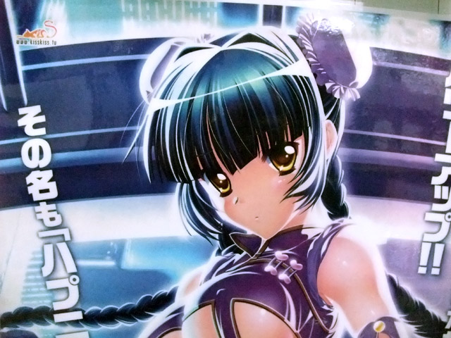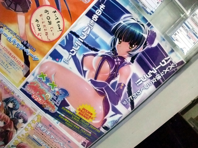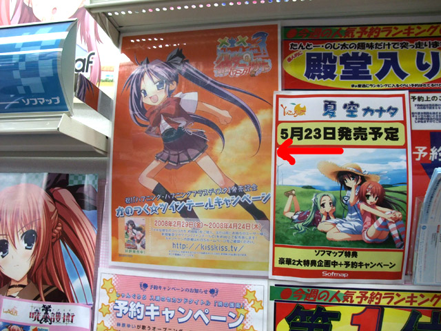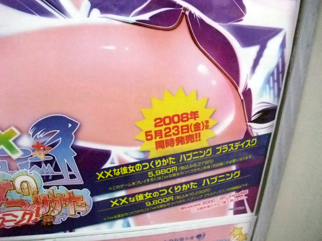 アキバOSさんがお伝えされているように、5月23日に、Kissのエロゲと、「xxな彼女のつくりかた ハプニング」(AA)、「xxな彼女のつくりかた ハプニングプラスディスク」(AA)が同時発売予定となっています。さりげなくエロゲの取り扱いをしているキャラシティ4F入り口付近に、その告知POPが2種あることに気がつきました。そのうち1種には某○○のリュー○ンそっくりなキャラがw