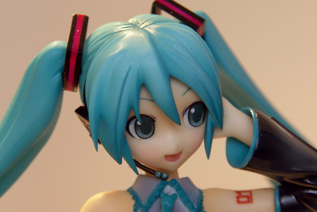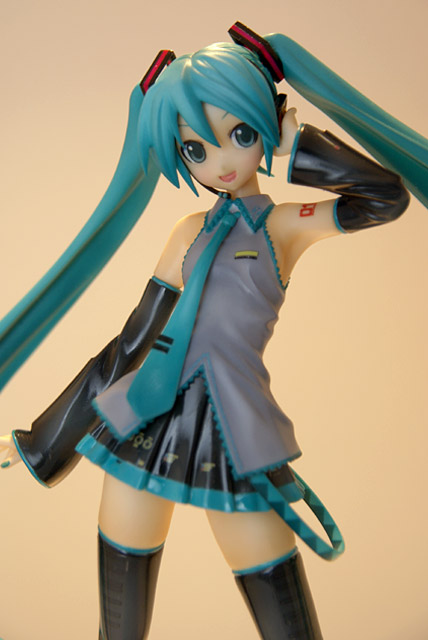 これは、以前ワンフェス2008冬無彩色サンプルの展示があった、ねんどろいど(サンプルレビュー)やfigma(参考サンプル)でも発売される、クリプトンのDTMソフト「VOCALOID2 初音ミク」(RA)を立体化したものです。