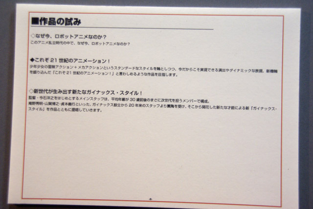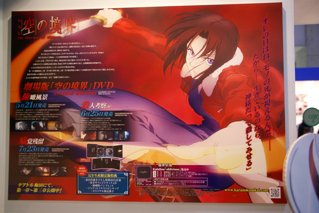 2008年3月27~30日に「東京国際アニメフェア2008」が開催されます。そのビジネスデーである27日にお邪魔することが出来ましたので、会場の様子をフォトレポートとして、2回に分けてお伝えします。こちらでは、ブース内で見かけたPOP、資料などの展示物をお伝えします。画像はアニプレックスブースにあった「空の境界 俯瞰風景 限定版」(AA)のパッケージサンプル。