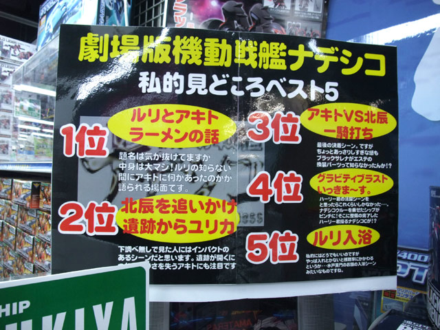 他、ソフマップアミュースメント館では、劇場版ナデシコの「私的見どころベスト5」としたPOPも掲示されていました。