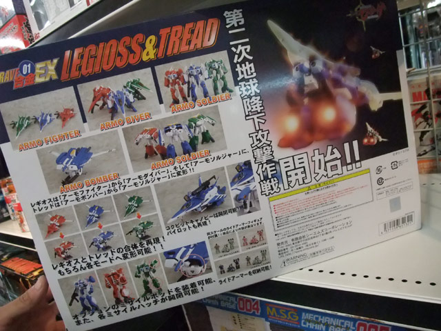 商品化発表から問い合わせが多かった「レギオス&トレッド」がBRAVE合金EX として登場!!レギオスはアーモファイター・ソルジャー・ダイバーの各形態に変形!また、コックピット、ランディングギアハッチ、ミサイルハッチが開閉。そして今回初の立体化となるトレッドがセット。トレッドもレギオス同様、アーモボマー、ソルジャーに変形!もちろんミサイルハッチやコックピットハッチも開閉!最大のポイントはこの2機がCM’s独自の解釈により合体可能に!これで第2次地球降下作戦を再現せよ!!。