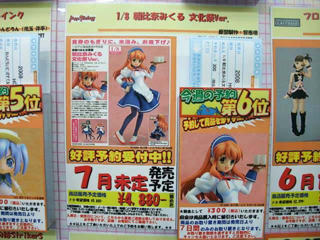 他、グッドスマイルカンパニー「ねんどろいど もえたん ぱすてるインク」(AM)、マックスファクトリー「涼宮ハルヒの憂鬱 朝比奈みくる 文化祭Ver. 」(AA)等のグッスマ・マックスの新作がランクインしていて、相変わらずの強さを見せ付ける結果に。