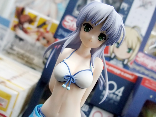 マックスファクトリー「夜明け前より瑠璃色な フィーナ・ファム・アーシュライト」(AA)のサンプルレビューです。これは、ドリパ東京2007秋での展示もお伝えした、オーガストのエロゲ「夜明け前より瑠璃色な」のキャラ「フィーナ・ファム・アーシュライト」を水着姿で立体化したもの。べっかんこう氏イラストの、独特の瞳も綺麗に再現され、全体的に落ち着いた雰囲気がいい感じw