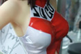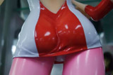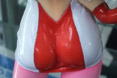 ビニールっぽい艶やかなミニタイトコスが、伸縮素材?と思ってしまうくらい体に密着していて、ボディラインがくっきり浮き出ていますw