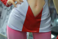 コスの密着感がすごいので、スカート越しにお尻の形が浮き出ていますw