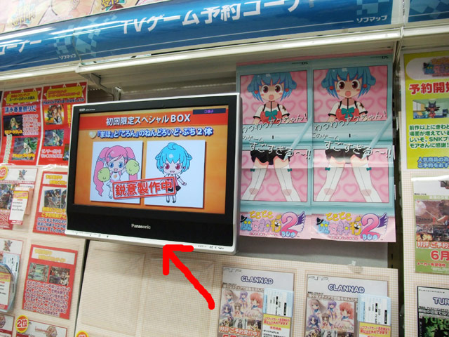 7月31日発売予定で、ねんどろいどぷち2種が付属する予定のDS「どきどき魔女神判!2 Duo 初回限定版」(AA)の店頭予約が開始していて、ソフマップアミューズメント館1Fの予約コーナーでは、店頭デモの放映も開始されていました。前作も店頭デモで乳ゆれを公開していましたが、今回は「心も体もリアルに反応!」として、乳ゆれどころか尻ゆれも公開していましたw