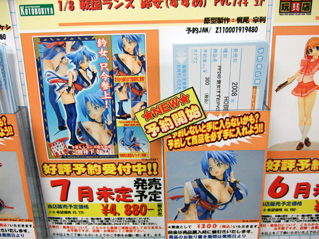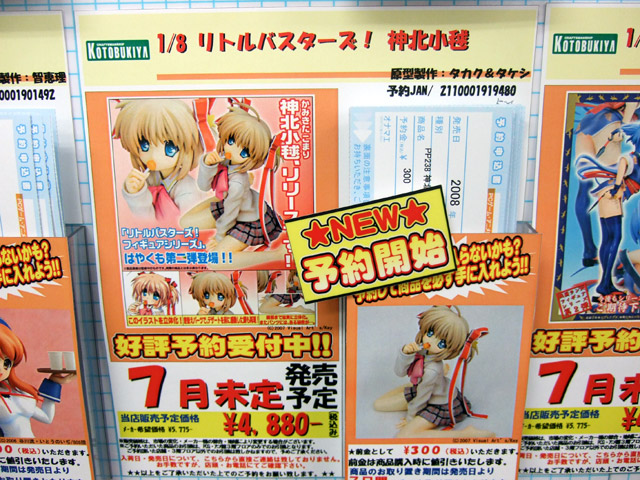ソフマップPCゲーム・アニメ館では、コトブキヤ「リトルバスターズ! 神北小毬」(AM)、「戦国ランス 鈴女(すずめ)」(AM)、和風堂玩具店「ToHeart2 小牧愛佳」(AM)の予約受付が開始されていました。