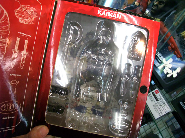 Amazonの商品説明によると『月刊IKKI(小学館)に連載中の、人気コミック『ドロヘドロ』より、主人公『カイマン』がPVC塗装済み完成品にて驚愕のフィギュア化!作者の林田球氏、単行本の装丁を手がけるメチクロ氏が徹底監修!細部にこだわり抜いた完成度での立体化が実現!頭部の交換により『ノーマルVer.』と『ガスマスク Ver.』がそれぞれ再現可能。付属武器としてナイフ2本・斧1本が付属。手首も左右2種ずつ付属し、非可動ながら様々な表情で楽しめるプレイバリューの高いシリーズ。 ファン納得のおまけも充実!』と紹介されています。