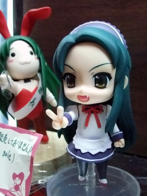 4月7日、グッドスマイルカンパニー「ねんどろいど 鶴屋さん」(AA)が発売されました。これは、以前ドリパ東京2007秋での展示もお伝えした、「涼宮ハルヒの憂鬱」のキャラ「鶴屋さん」を劇中のウェイトレス姿でねんどろいど化したものです。キャラシティでは店頭販売も開始していて、そこにあったサンプルには、ねんどろいどハルヒボディと組み合わせた「あやつられ鶴屋さん」も。