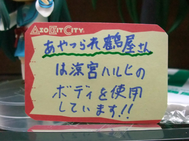こちらは、POPによると「涼宮ハルヒ」(AA)のボディを使用しています」という、おまけパーツとして付属する操り人形時の腕と足、顔パーツと、ねんどろいどハルヒボディを組み合わせた「あやつられ鶴屋さん」のサンプル展示の様子。