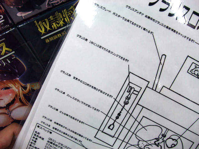4月25日発売予定のDual Tailのエロゲ「奴隷将校クラリス ~白濁のグローリエ~」(AA)ですが、ソフマップアミューズメント館5Fカウンター横に、その「奴隷将校クラリス」のダミーパッケで作られた「GR-01 クラリスロボ」が展示されていました。