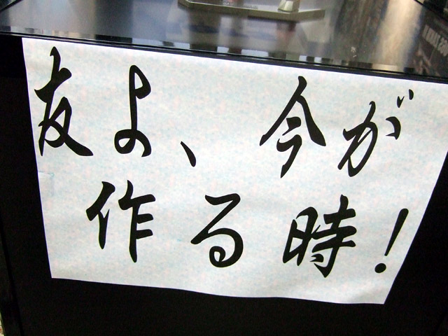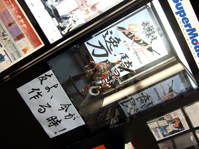 スーパーモデラーズでは、「逸騎刀閃」「友よ、今が作る時!」等と書かれたサンプル展示が開始していました。
