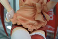 朱色のエプロンの下に、ほんのりと確認できるふくらみ具合が絶妙ですね~w