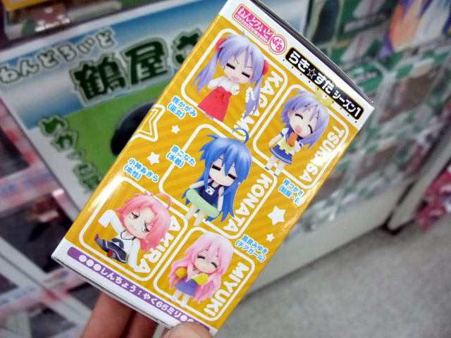 泉こなた(制服・冬)、柊かがみ(制服・冬)、柊つかさ(制服・冬)、高良みゆき(制服・冬)、泉こなた(水着)、柊かがみ(巫女)、柊つかさ(制服・夏)、高良みゆき(チアガール)、小神あきら(アイドル)、小神あきら(本性)の全10種+シークレット。
