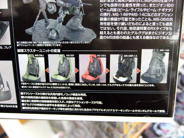 バンダイ「MG 量産型ゲルググVer.2.0」(AA)のパッケ表と側面の解説など。