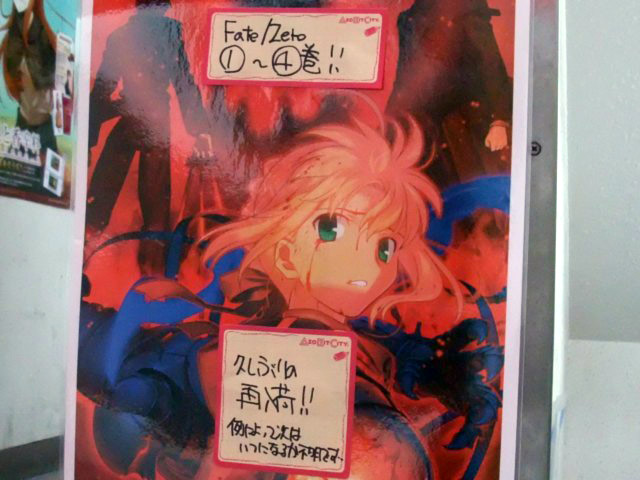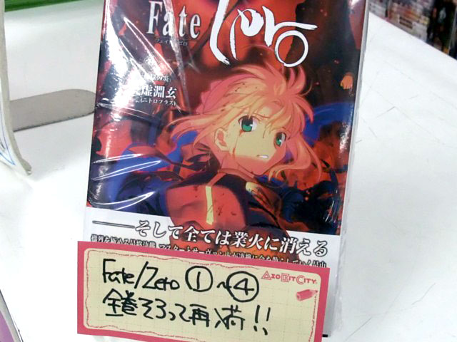 ゲームシティでは「Fate/Zero1~4 全巻そろって再入荷っ!!」というPOPも。