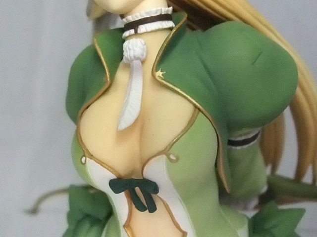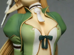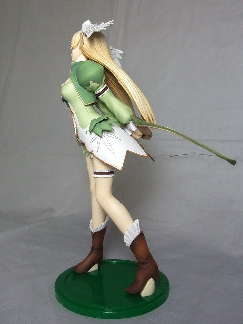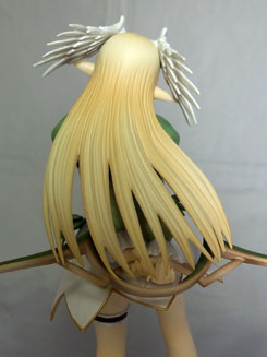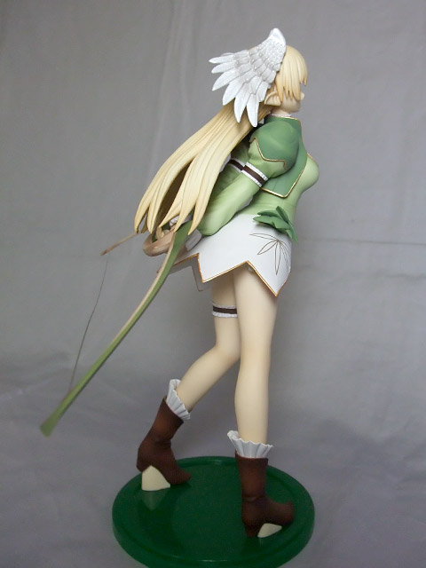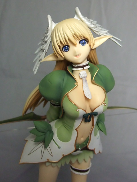 これは、以前キャストサンプルレビューをお伝えした、「シャイニング・ウィンド」のキャラ「エルウィン」を立体化したもので、コトブキヤの商品説明によると「<>セガが贈る”心にふれるRPG”『シャイニング・ウィンド』より、前作『シャイニング・ティアーズ』のヒロインキャラクター「エルウィン」が『シャイニング・ウィンド』に登場するコスチュームを纏ったバージョンで登場です。弓を後ろ手に持ち、明るい表情、伸びやかなポージングで非戦当時の穏やかな時間の中にある彼女のひと時を表現しました。髪や胸の羽飾りや、胸周りの露出度の高い特徴的なコスチューム、服のラインなども細かく再現。彩色やアイプリントも徹底監修により、イメージ通りの仕上がりになっています。」と紹介されています。