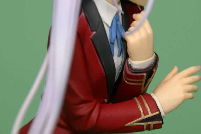 これは、オーガストのエロゲ「FORTUNE ARTERIAL」(AA)のキャラ「東儀 白」を、第1弾「FORTUNE ARTERIAL 千堂 瑛里華」(AA)、第2弾「FORTUNE ARTERIAL 紅瀬 桐葉」(AA)(参考サンプルレビュー)に続く、全5種発売予定のウェーブ「FORTUNE ARTERIALシリーズ」の第3弾として立体化したもので、ウェーブの商品説明によると『大人気、オーガストの新作「FORTUNE ARTERIAL」より第3弾「東儀」がリリース。原型製作には前作・紅瀬桐葉に続き、東海村原八氏が担当し、オーガスト、べっかんこう氏により細部までこだわりの監修を受け、フィギュア化致しました。千堂瑛里華、紅瀬桐葉同様、全員をそろえると綺麗に並べられるようベースにはオマケのプレートが付属しています。』と紹介されています。