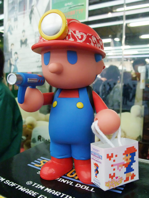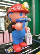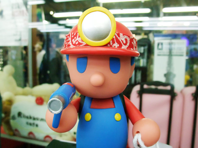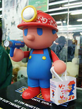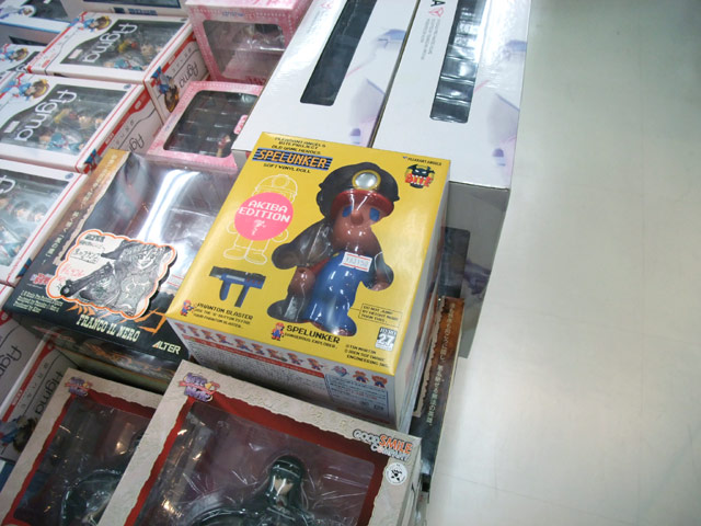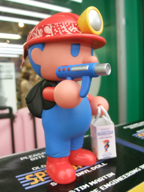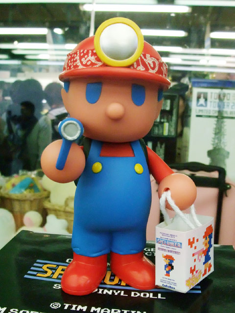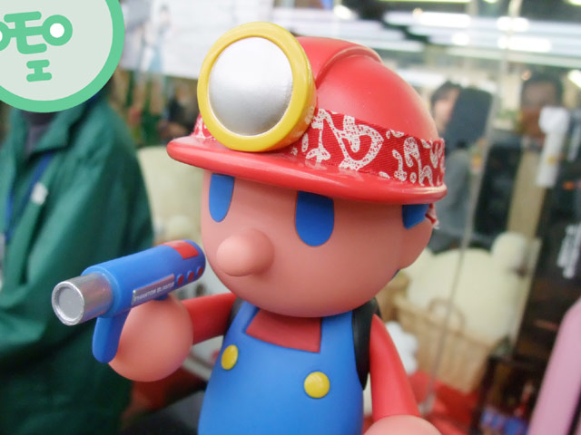 これは、ワンフェス2008冬でもサンプル展示のあった、アクションゲーム史上「最弱の主人公」といわれる「スペランカー」をソフビとして立体化したもので、プレッサントエンジェルズの商品説明によると『PleasanrAngels BITE(バイト)project発足。商売を無視した「俺が欲しいもの」をテーマに商品を展開していきます。OLD GAME HEROESと題して、80年代前後の往年のゲームキャラクターを当時のイメージを崩さず、かわいさ+αのソフビ製フィギュアとして立体化していきます。第一弾は、ファミコン史上最弱のヒーローの名を欲しいままにする「スペランカー」です。否応なしに訪れるトラップを、何度も蘇り突き進むスペランカー。その勇姿を困り顔で可愛らしく表現しました。ゴースト退治に必須の銃「ファントムブラスター」も付属します。』と紹介されています。