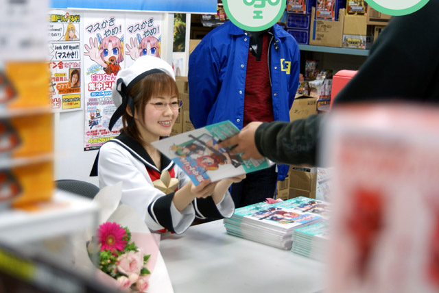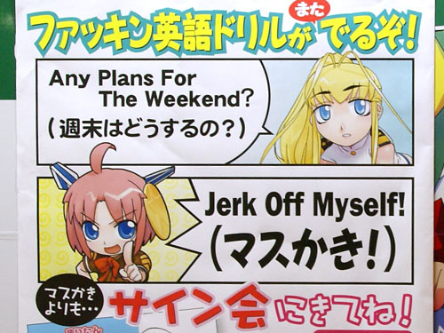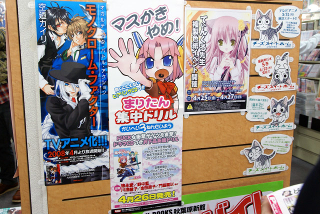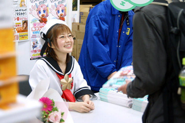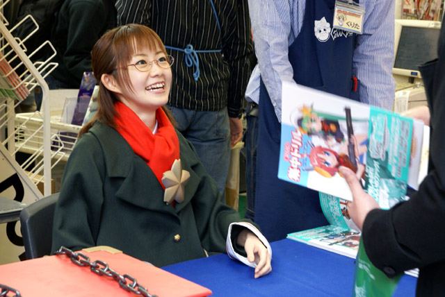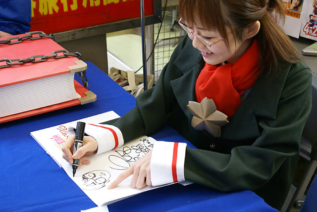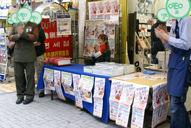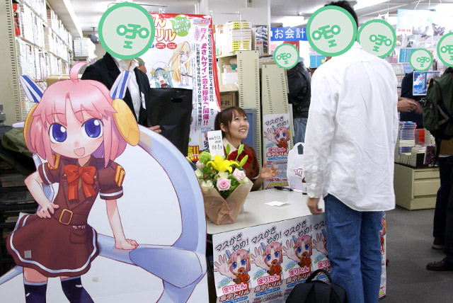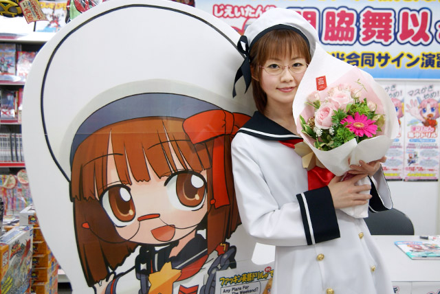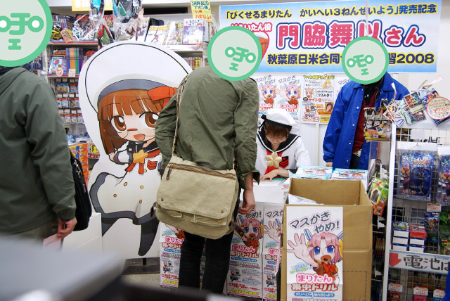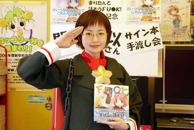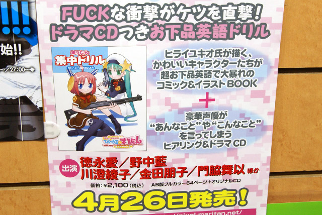 4月26日「まりたん集中ドリル かいへい3ねんせい」(AA)の発売記念イベントとして、まりたん役の徳永愛さん、じえいたん役の門脇舞以さんによるサイン会が秋葉原の5店舗にて行われました。これは「まりたんと話そうF・●・C・K」(AA)に続くヒアリングCDが付属する英語のドリルで、Wikipediaによると「通常の会話では絶対に用いるべきではない」とされているもの。