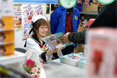 「いっぱいつかってくださいね」と言いながら手渡す舞以さん。