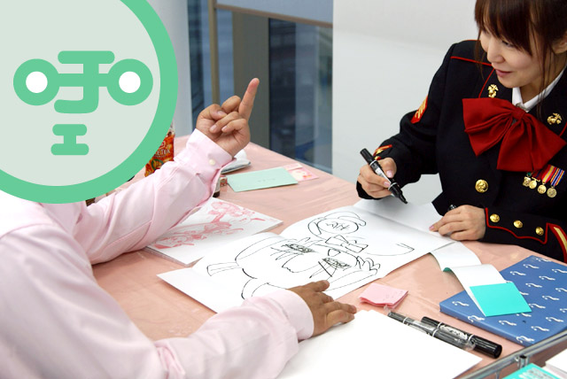 サインに入れる名前のかわりに似顔絵をリクエストする人も。