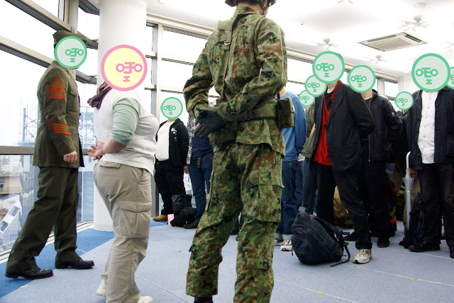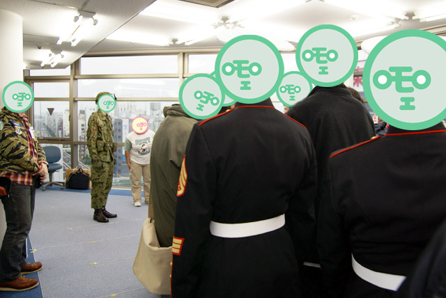 本誌の英語監修を担当されている、元海兵隊員の方がいらしていたということで、列の最後尾にて 突発的に行われた軍隊豆知識講座。