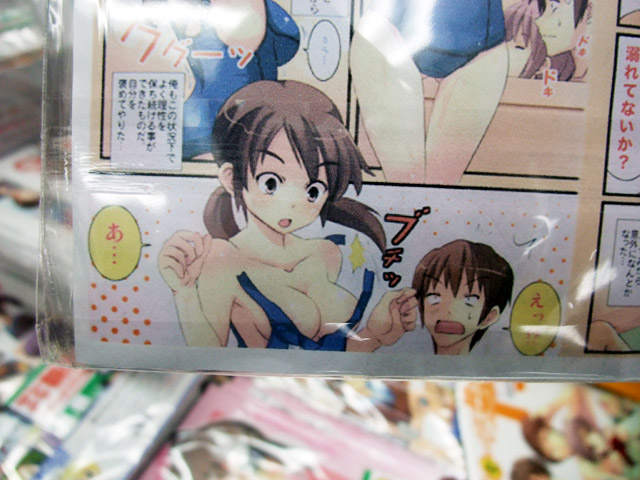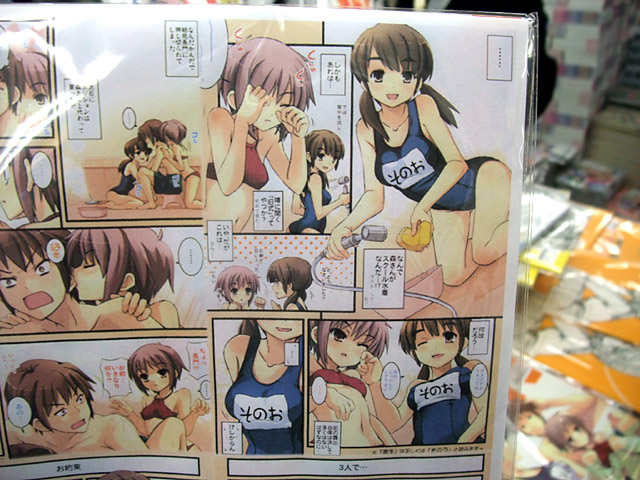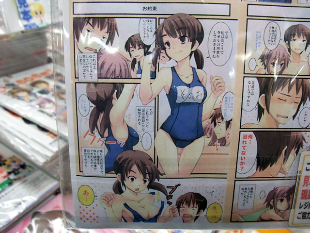 他、メッセサンオー3号店でも入荷したみたいで、「皆は第2絶対領域というモノを知っているか?ソレは横からはみ出ている横乳等のことをいうんだよ。」とかかれたPOPには、長門が手を握ってきたり、耳たぶかんだり、森園生のスク水乳やスク水ケツのアップや、「わたし(長門)がスポンジの代わりをする」シーンなどが掲載されていましたw