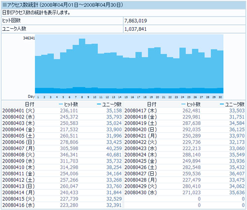 総ヒット数は786万3019。総ユニーク数は103万7841でした。トップページへのアクセス149万0192PV。(内、新環境トップは148万3816、旧ライブドアブログトップは6376)