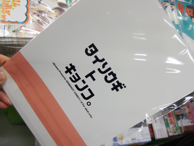 5月1日、ユーシャ氏のサークルnEetestさんが「COMIC1」で頒布された大人向け同人誌「タイソウギトキョンコ。」がメロンブックスに入荷していました。これは、以前同人誌3冊発売もお伝えした、キョンを性転換させ、女性にした「キョン子」本のひとつ。いままで見かけたものは一般向けでしたが、これは「あっ・・・ヤダ・・・入ってる・・っ」等がある大人向け同人誌。多分初?