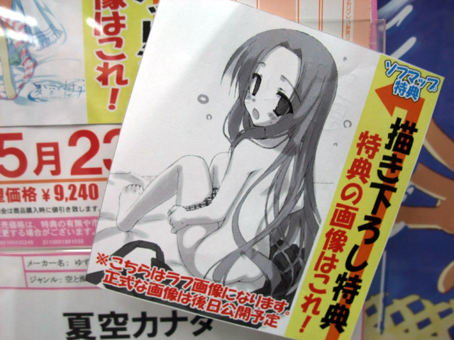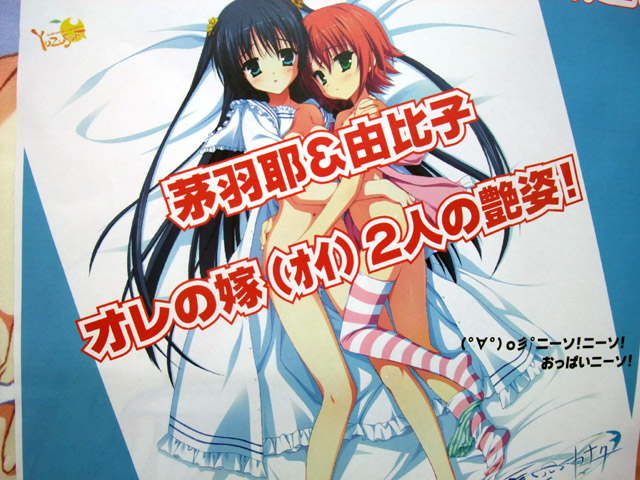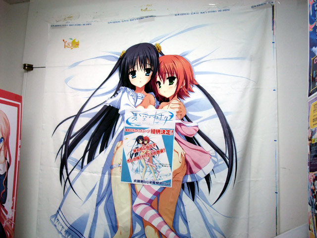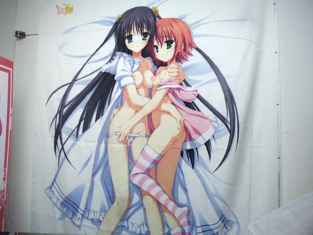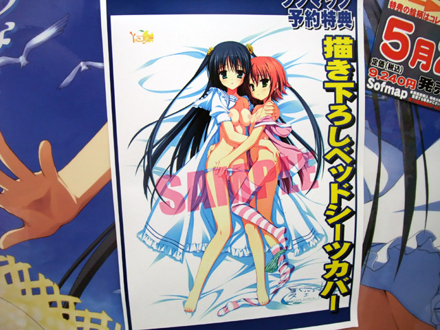 5月23日発売予定のゆずソフトのエロゲ「夏空カナタ」(AA)ですが、ソフマップAM館にて、ソフマップショップ特典の「描き下ろしベッドシーツカバー」のサンプルが5月1日に掲示開始しました。イラストはPOPによると「オレの嫁(オイ)2人の艶姿!」という、上坂茅羽耶と三好由比子の二人が寄り添うもので、よくみると乳首部分をすり合わせている、いわゆる「乳首あわせ」してましたw