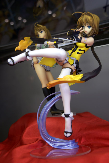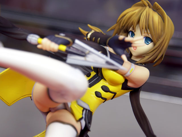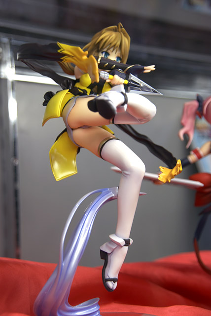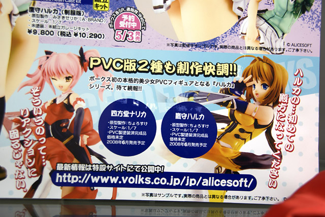 5月3日に開催された、ドリームパーティ東京2008春のアリスソフトブースでは、ボークス「超昂閃忍ハルカ 鷹守ハルカ」のサンプルが展示されていました。これは、アリスソフトのエロゲ「超昂閃忍ハルカ」のキャラ「鷹守ハルカ」を戦闘服姿で立体化した、「ボークス初の本格的美少女PVCフィギュア」。バックステップのようなポーズなので、角度によっては食い込みパンツ丸見え